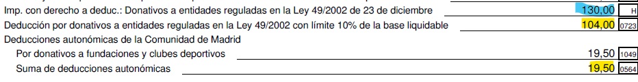 Recuerda que hay un 80% de desgravación estatal + un 15% de la parte autonómica.
